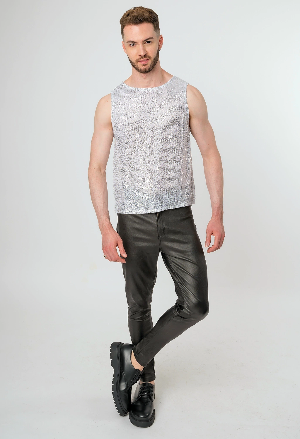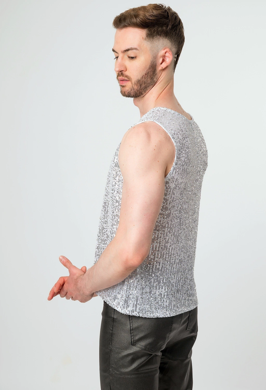 La Musculosa Diamonds es la elección perfecta para quienes buscan un toque de sofisticación en su vestuario. Confeccionada en hermoso paillete de sutil transparencia, esta prenda destaca por sus columnas de lentejuelas de brillo intenso, que aportan un glamour excepcional a cualquier conjunto.